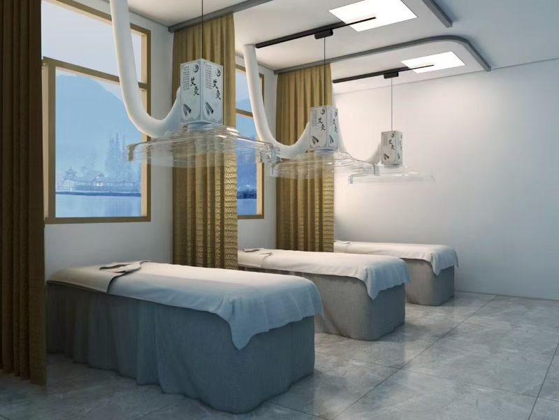 1:定制化解决方案:针对不同场景(医院艾灸科,大型艾灸馆,小型诊所)的空间大小,艾灸床位数量,布局特点。提供个性化的排烟系统设计。避免设备与场景不匹配导致的排烟效率低问题。